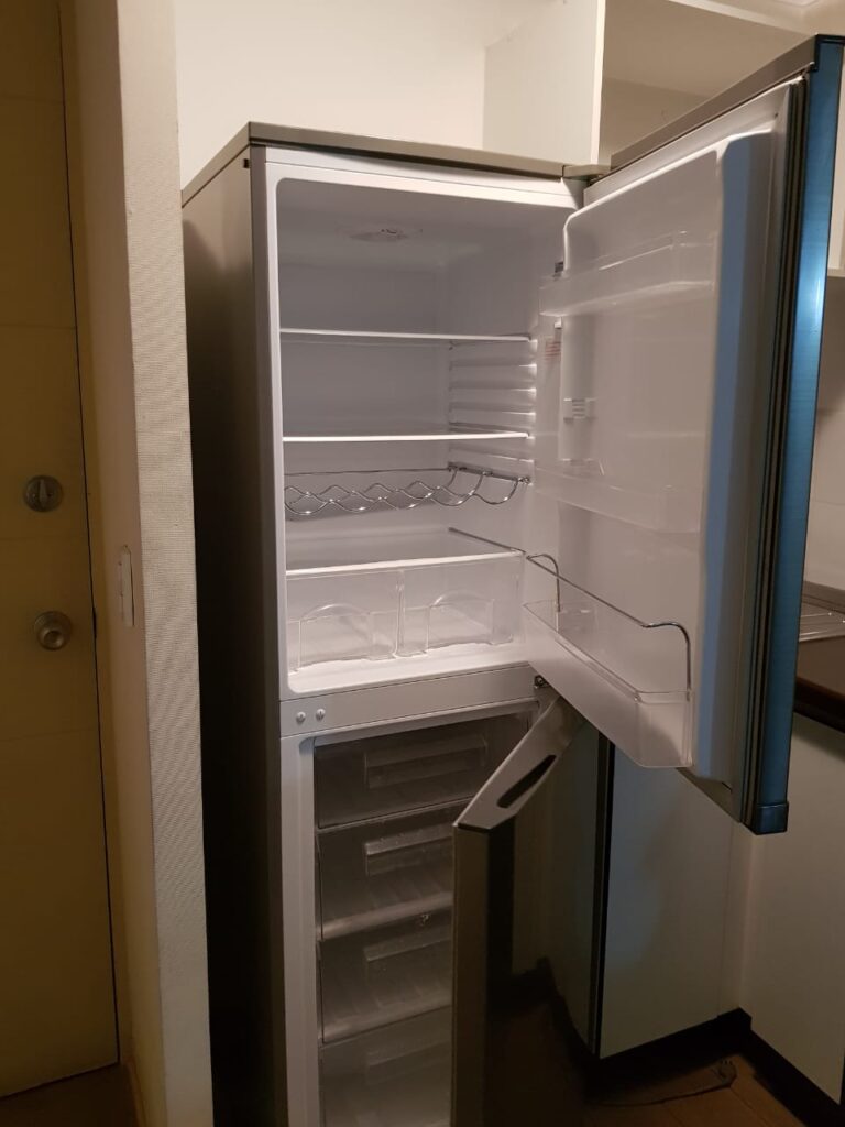 1 Dormitorio, 1 Baño, Cocina Americana con Horno y encimera de 2 platos, equipada con Refrigerador y horno microondas.